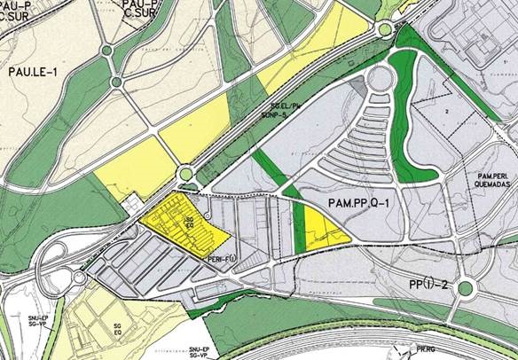 PP Q – 1 Quemadas Superficie total: 355.215 m2. Superficie lucrativa: 143.648 m2. Usos y zonificación de suelo MI1; MI2 (industria aislada); MI3; MI4; MI5; MI6; MI7 (industria adosada); MX (industria taller); MF (industrial taller).